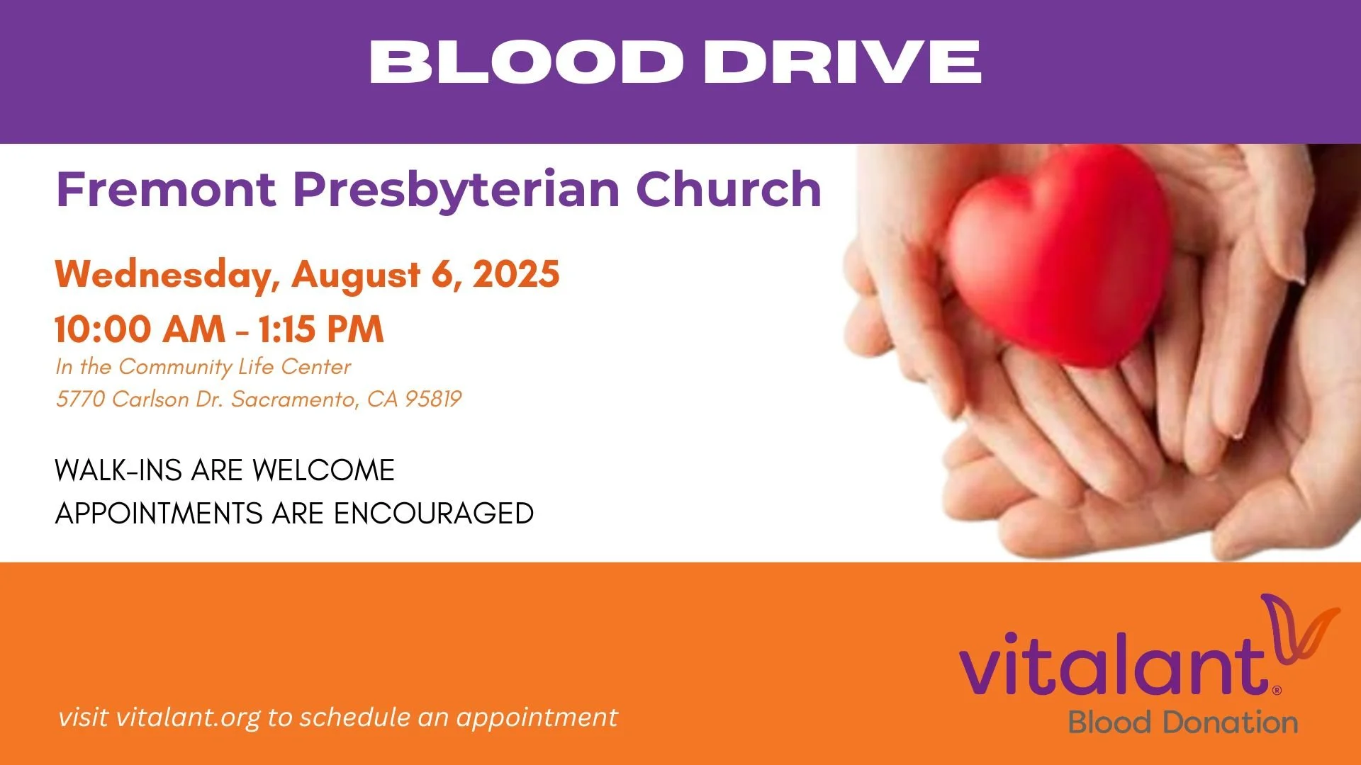 Our next Blood Drive will be on August 8th, 2024 from 10:00 am - 1:00 pm